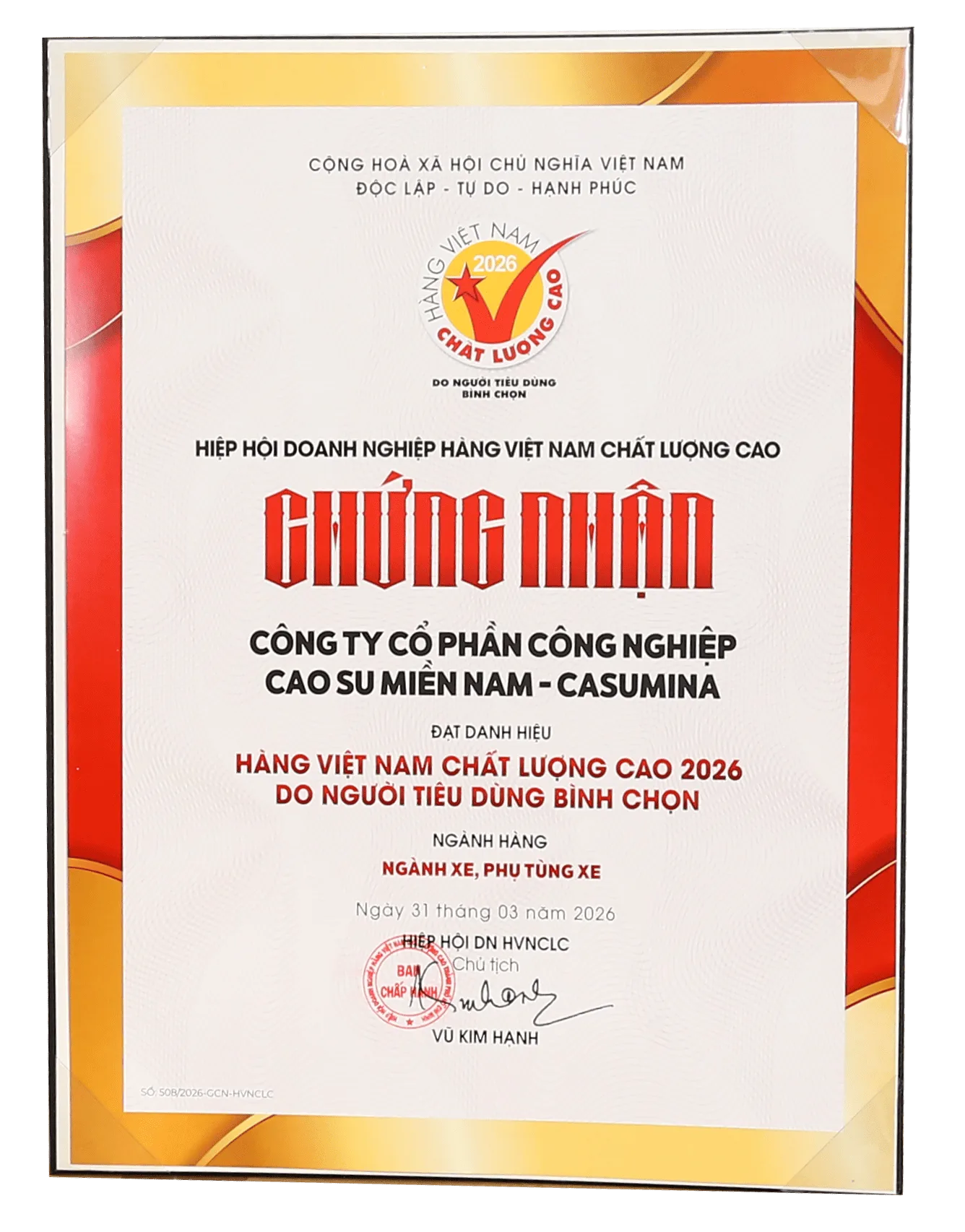CASUMINA đã tăng hạng vượt bậc, đứng thứ 61/75 công ty hàng đầu về sản xuất săm lốp trên thế giới. Giữ nguyên Top 5 Công ty Thành Viên có doanh thu cao nhất của Tập đoàn Hóa chất Việt Nam.